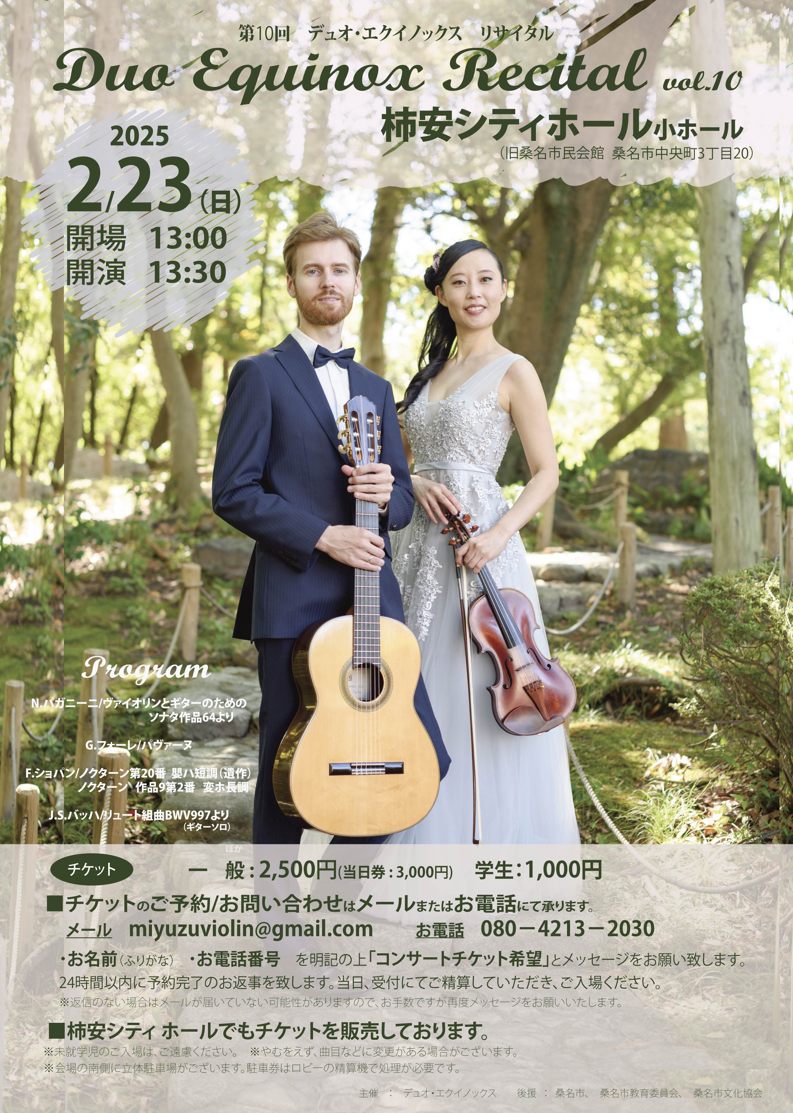 チケットのご予約はメールにて承ります: miyuzuviolin@gmail.com