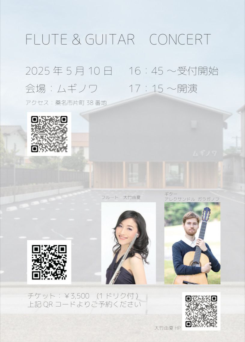 ※お名前(ふりがな)/お電話番号/枚数を明記の上「ギターコンサート予約」とメッセージをお願いいたします。miyuzuviolin@gmail.com